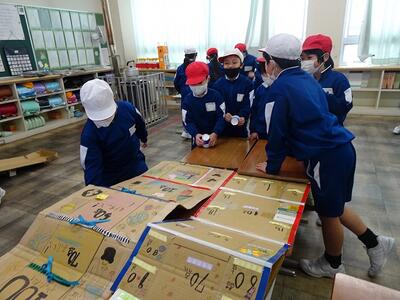 1年生は「給食かるた」づくり、3年生は「へんしんする食べ物」の説明文作成、6年生は「マイおすすめこんだて」づくり、2・4・5年生は日頃お世話になっている配膳員さん、用務員さん、給食センターの皆さんに感謝のお手紙を書きました。