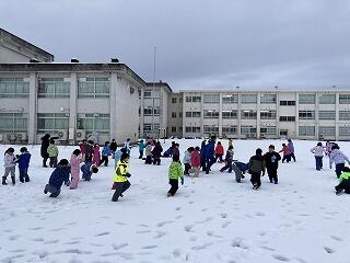8日(火)の1時間目に生活科「ふゆをたのしもう」で雪遊びをしました。子どもたちは、校庭にたくさん積もった雪を見て、雪合戦をしたり、雪の上に寝転がったりと思い思いに楽しく過ごしていました。