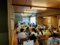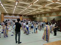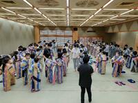 浴衣着付けです。なかなか一人では上手く着られないので、みんなでお互いに帯のしめあいをしていました。そして最後は、学年全員で記念撮影。素敵でした。