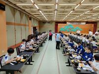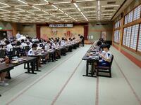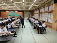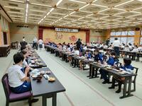入館式、そして待ちに待った夕食です。みんな楽しそうに食べています。