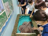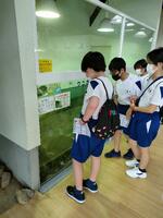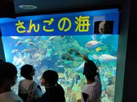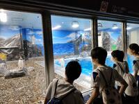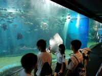 大きなマンボウ、可愛いペンギン、ドクターフィッシュ、ウミガメ、イルカ、カエル、イグアナなどおもしろい動物がたくさん。グループで自由散策しています。