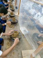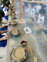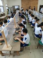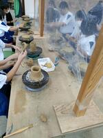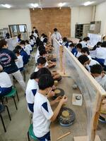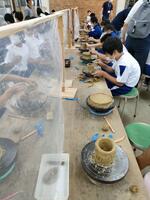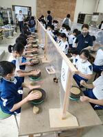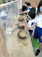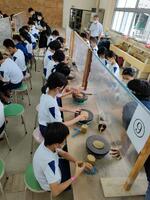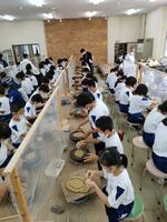 できてきました。個性あふれる作品が。今日は手でこねて形を作るまでです。焼き上がった作品は後日学校に届きます。お楽しみに。