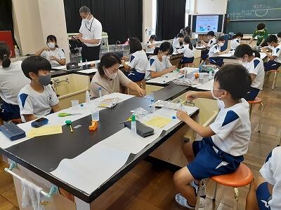 日本原子力研究開発機構よりゲストティーチャーをお招きし、4年生で理科の授業を行いました。「電流のはたらき」という単元の発展学習で、いろいろな電池をつくりました。