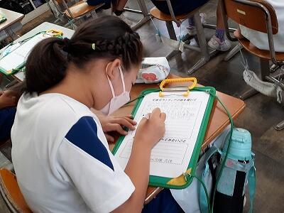 次に、同じ班の友達のいいところをかきました。皆、じっくり考えながら書いていました。