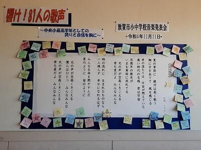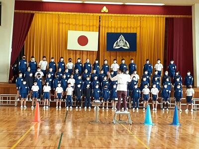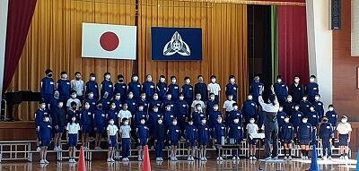 歌声が素晴らしい6年生。今日も、「校歌」「絆」「旅立ちの日に」3曲の合唱を披露しました。