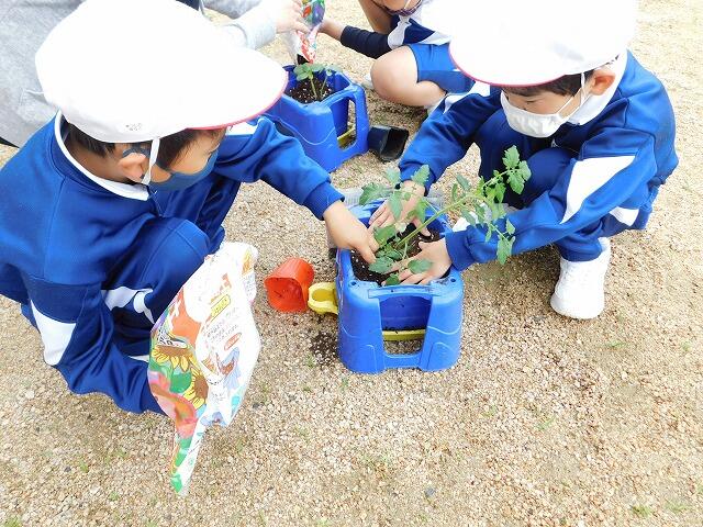 中には、収穫できる野菜もあり、毎日の観察が楽しみな子どもたちです。
