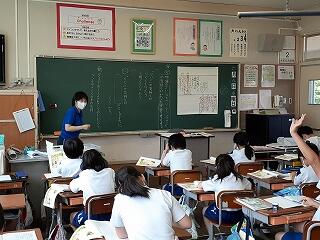 6月22日(火)、2年3組で算数「100をこえる数」の授業公開を行いました。「10を24こあつめた数は?」「360は10がなんこ?」という問題に、子どもたちは図をかいて一生懸命考えていました。図をペアで見せ合ったり、タブレットを使ってテレビに映したりして交流しながら、最後まで意欲的に取り組みました。放課後には、全教員で研究会を行いました。