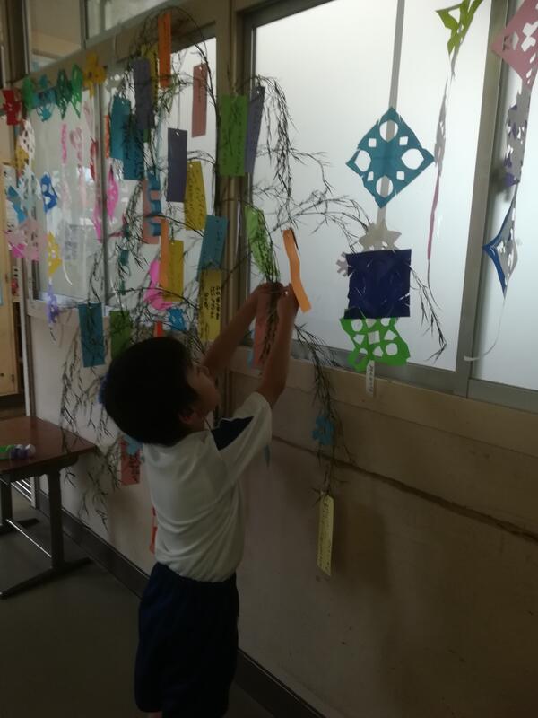7月7日の七夕を前に、短冊に願い事を書いて、笹にかざりました。
