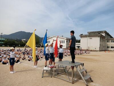 すがすがしい秋晴れの朝で、保護者の方や職員と共に