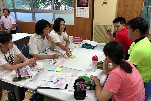 親子道徳の取組についてアイディアをいただきながら、3グループに分かれて