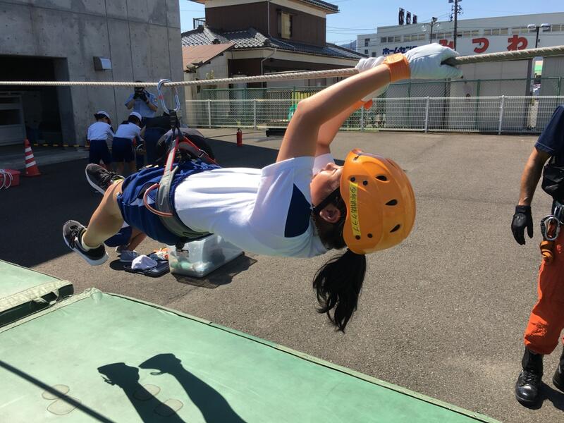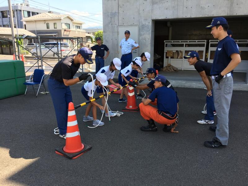 消火・放水訓練やロープレスキュー体験、災害時などに役に立つロープの結び方などを学びました。