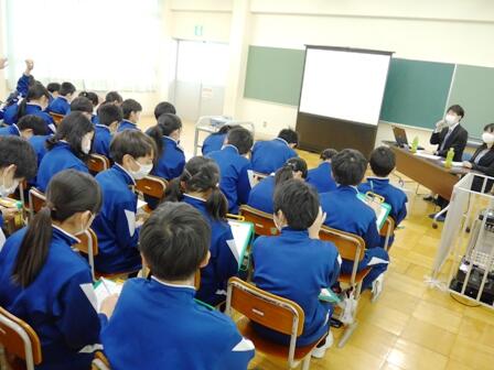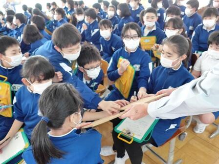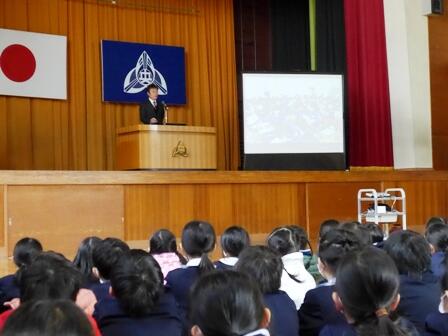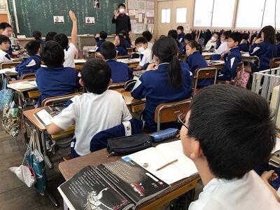 最後にご自身の人生についてのお話がありました。その中で、「いろいろなことが起こってもあきらめない気持ちが大切だ」というお言葉をいただきました。子どもたちもその言葉を心に受け止め、感想の中では、「自分も○○に向けてがんばろうと思いました。」「わたしは○○が苦手だけど、永尾さんの話を聞いてこれからがんばろうと思いました。」など、前向きな気持ちを示したものが多かったです。