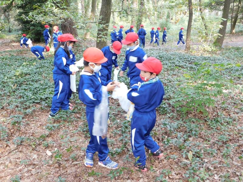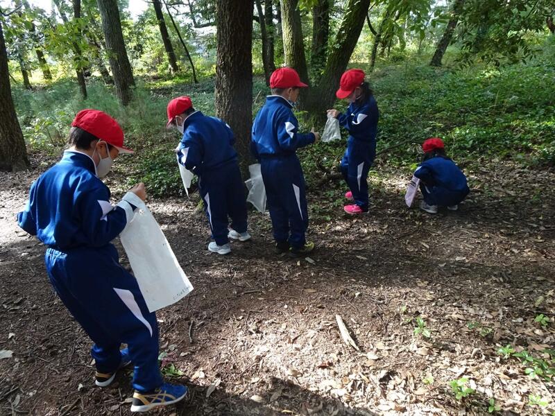 まずは、松原で松ぼっくりやどんぐりなど、秋のお宝を拾いました。