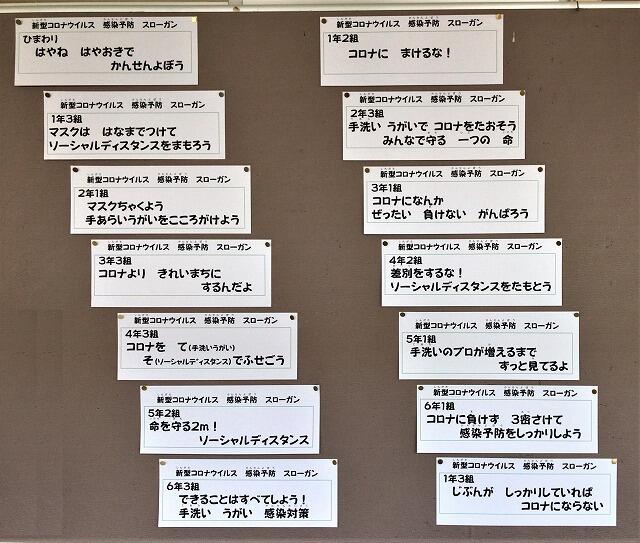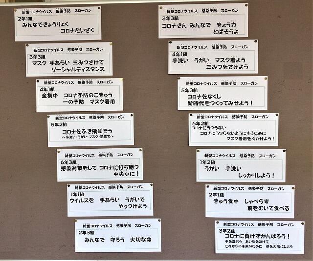 各学級で考えた新型コロナ予防スローガンの作品を松原公民館の