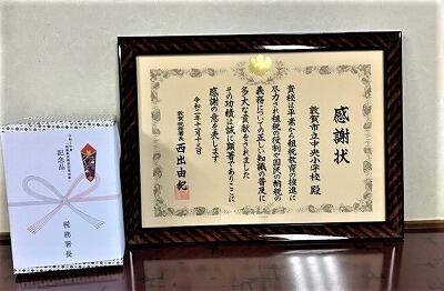 敦賀税務署長さんが来校され、感謝状を贈呈してくださいました。