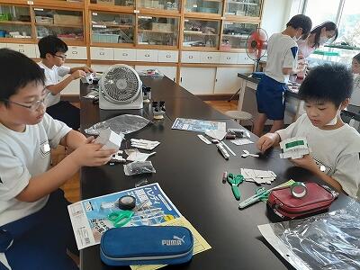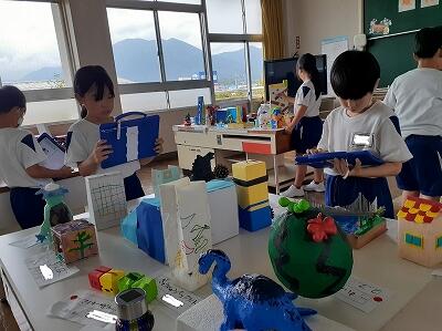 今日から夏休み作品展が始まりました。工作・自由研究など、どの学年の作品も見応えがあるものばかりです。子ども達は、気に入った作品の写真をとったりメモしたりしながら鑑賞していました。保護者の方々も早速見に来られていました。ぜひお越しください。