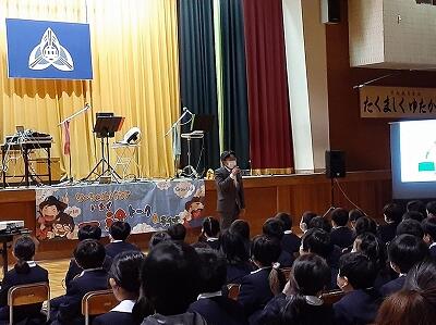 16日(水)は、4・5・6年生が参加しました。歌とトークを交え、命の大切さや、辛いことがあっても必ず幸せになっていけるんだよという力強いメッセージを送ってくださいました。子どもたちは、ずっとステージに釘付けでした。