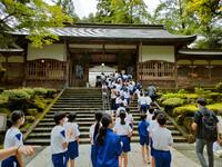 永平寺を見学しました。すごく大きなお寺です。ガイドさんの説明を聞いて、歴史や現在のようすについてしっかり学びました。