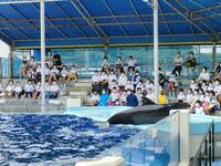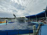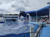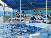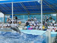 イルカショー始まりました。イルカの華麗な演技にみんなで感動です。