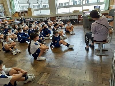 図書ボランティアさんがスイミーの掲示を作ってくださいました。