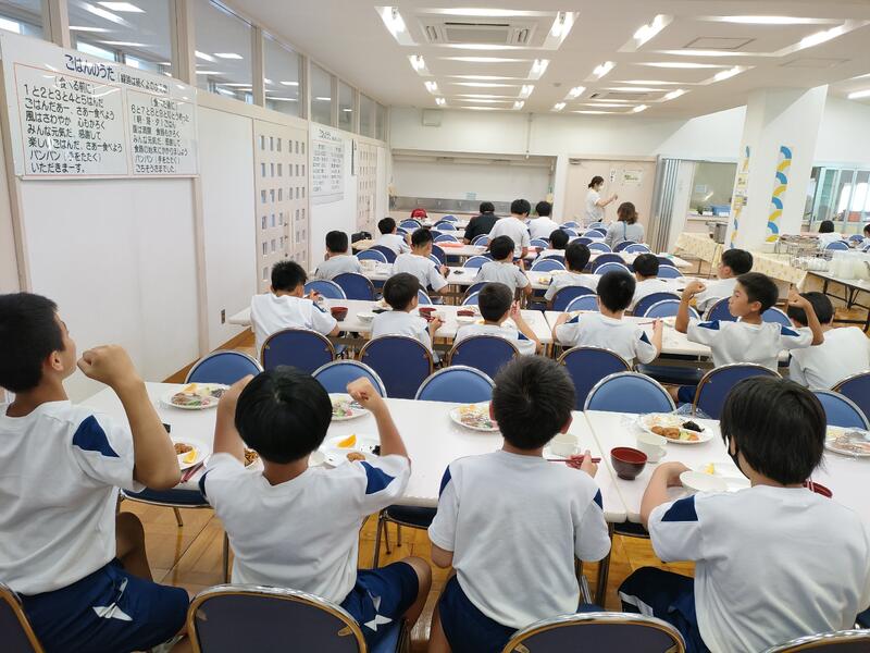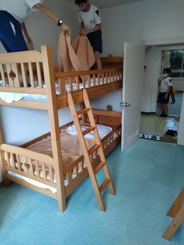 A班の夕食タイム、B班のベッドメイキングタイムです。