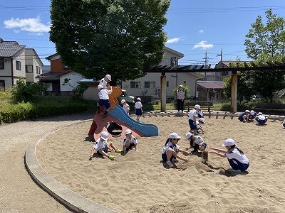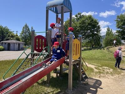 爽やかな青空の下、草花や虫を観察したり、遊具で遊んだり、友達と仲良く活動できました。
