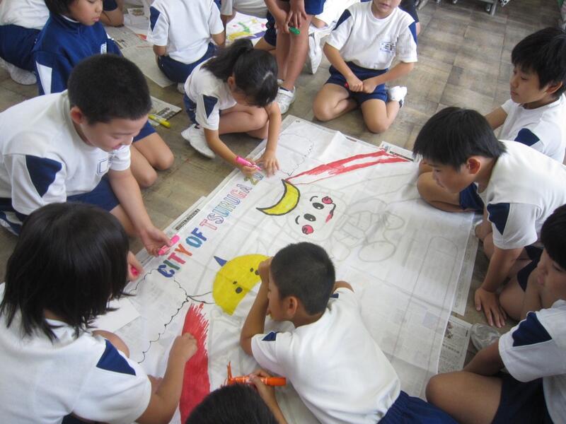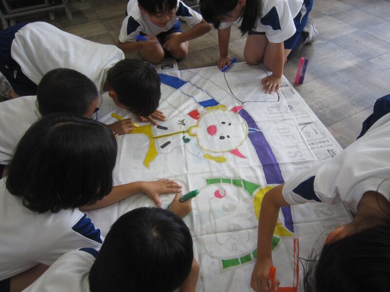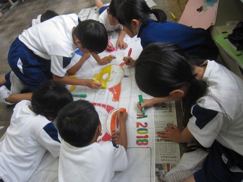 101日後にせまった福井国体!その応援に4年生も一役買います!はぴりゅうとツヌガくんを綺麗に色づけし、各グループからのメッセージものせました。アツい気候に負けずに、アツい思いよとどけ!!!