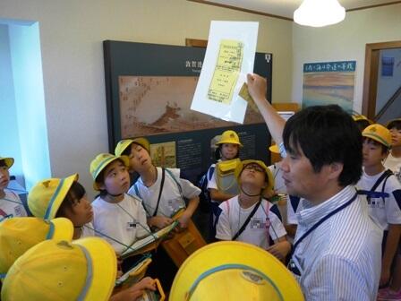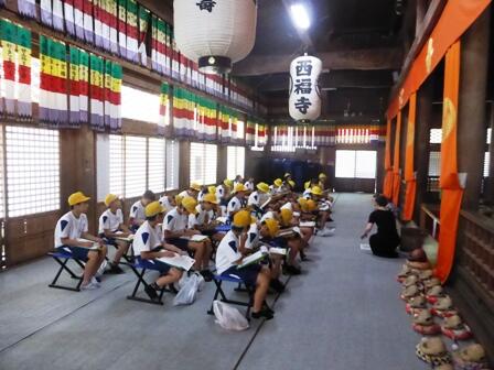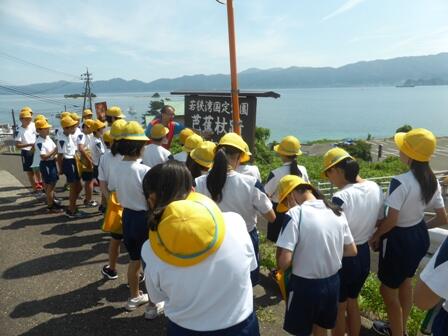 晴天の中、校外学習に行きました。今回は、「ふるさと学習」と銘打って、敦賀の名所や名物を実際に見学に行きました。