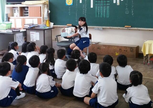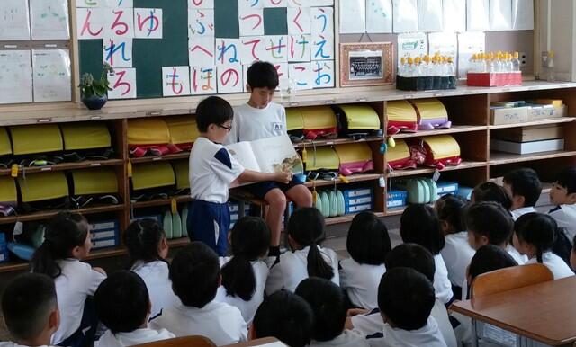 読書週間に合わせて、図書委員会の児童が低学年に本の読み聞かせをしました。図書委員おすすめの本を読んであげました。みんな楽しんで聞いてくれていました。これを機に、読書に親しんでいってほしいものです。