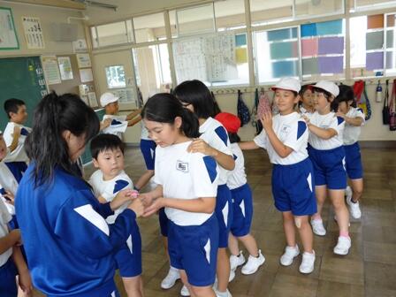 21日のコラボタイムに縦割り遊びをしました。各グループ6年生のリーダーを中心に仲良くあそびました。ドッジボールや鬼ごっこ、フルーツバスケット、ジャンケン列車などをして楽しみました。6年生にとっては初めての縦割り遊びでしたが、みんな楽しく時間を過ごせ、グループの仲間との関係も深まり大成功でした。