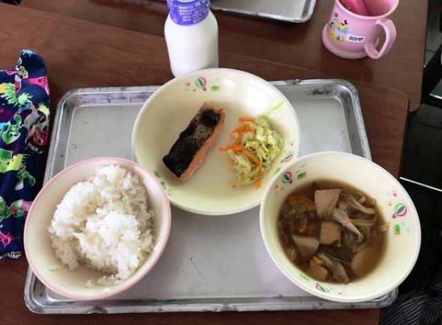 今日の給食は「ふくいのおいしい魚献立」でした。主菜は「ふくいサーモンの塩焼き」でした。ふくいの新しい特産物である「ふくいサーモン」を今日は給食で味わいました。