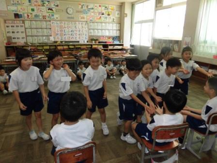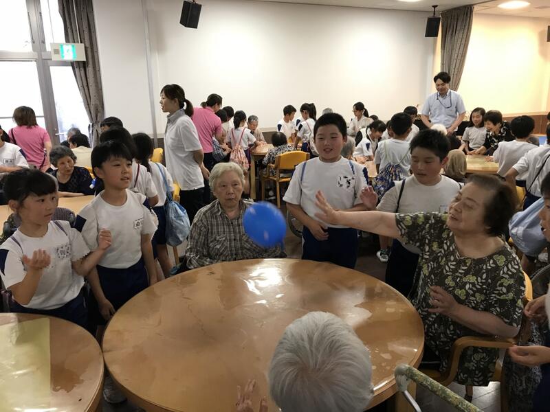 7月11日に、渓山荘に訪問に行きました!総合の学習でお年寄りの生活や用具について学習し、認知症サポーター養成講座を経て、お年寄りとのふれあいを楽しみに準備してきました。学年の出し物では、国体ダンス、パフ・山のポルカの合奏、ベストフレンド・勇気100%の合唱を行いました。その後、各グループに分かれて、考えた交流を行いました。交流は、子どもたちが思い思いに考えた物で、紙風船バレーやマジック、紙芝居やぬりえなど、様々な種類がありました。子どもたちは、子どもたちなりに考えて、お年寄りに対して丁寧な姿勢で接し、交流を楽しんでいました。お年寄りの方々も大変楽しんで頂けたようで、館長さんからも、「おじいちゃん、おばあちゃんがこんなに笑顔になったのは初めてで、いつも笑顔にしようとがんばっている職員としてはちょっとくやしいです。」とのお褒めの言葉もいただくことができました。