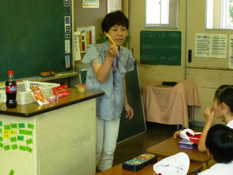 今日は、給食センターから栄養教諭の倍野先生に来ていただき、「おかしのひみつを知ろう」と