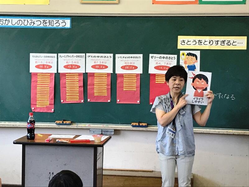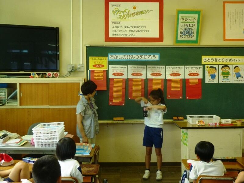 学習の後半では、砂糖が含まれている量や、糖分の正しい摂取についてのクイズを