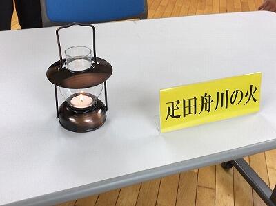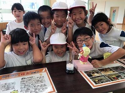 利用した火おこし機で誕生させた火のうち、疋田舟川の火が中央小にやってきました。