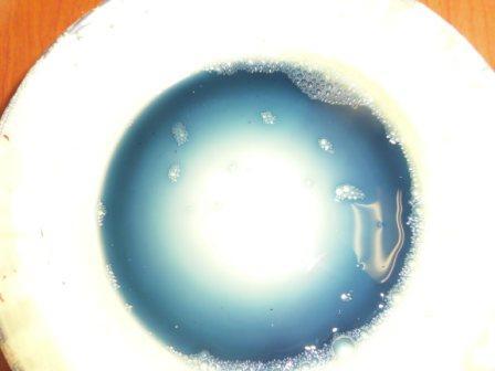 さらに、朝1番の青い花びらを採取して、色水を作ったらどうなるか実験してみました。