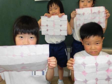 半紙を広げると、とってもきれいに朝顔の花びらの形が映し出されました。