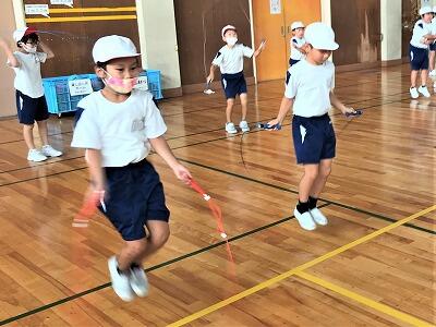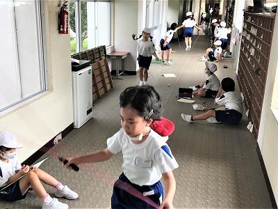 今日は天気が悪かったため、校舎内でのなわとびでした。