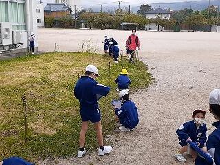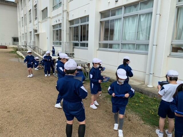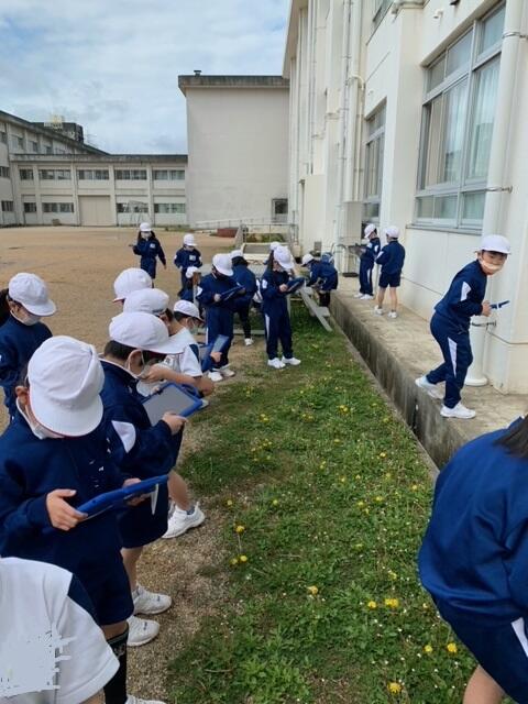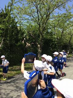 生活科「春だ今日から2年生」の学習で、タブレットを持って外に出かけました。