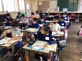 姿勢や筆の持ち方に気をつけて毛筆の練習をしました。