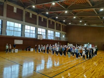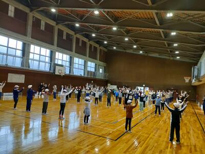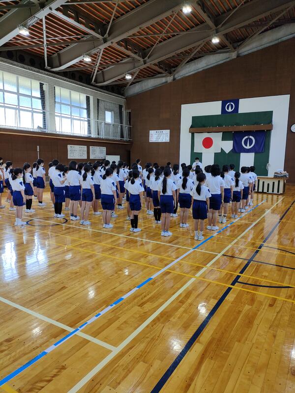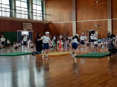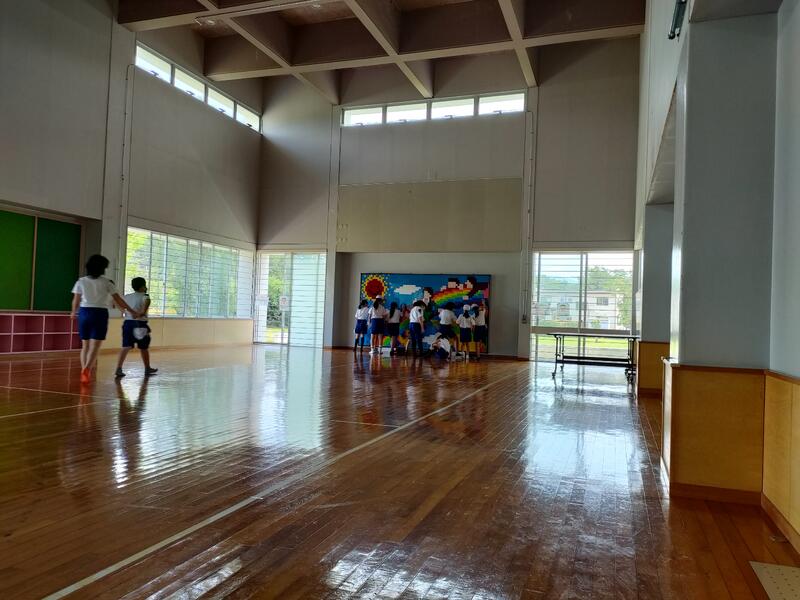 外で行う予定が、雨が降り出し急きょ体育館で行うことに…