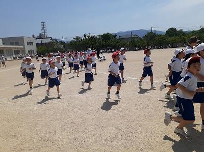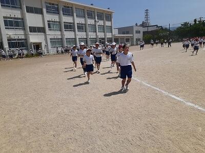 日差しは強かったですが、心地よい風が吹いていました。走り終わった後、「つかれたけど気持ちよかった。」という声が聞こえてきました。これからも、熱中症対策をしながら続けていきます。