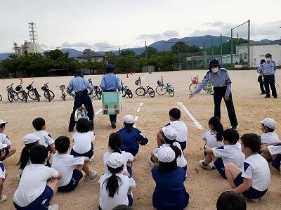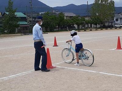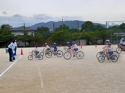 3年生が交通安全教室を行い、自転車の安全な乗り方を学びました。