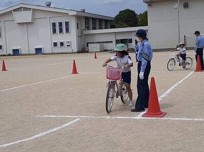 自転車の正しい乗り方、安全確認の仕方、ブレーキのかけ方など、教えていただきました。