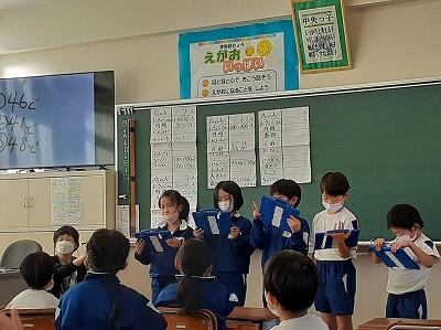 2年生。生活科で、まちたんけんの発表会を行いました。