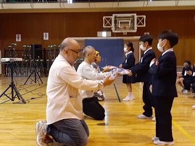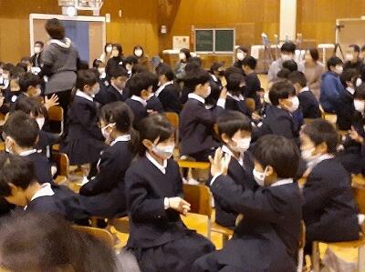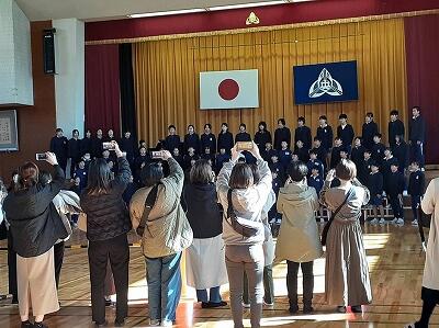 6年生。音楽発表会で披露した合唱を、再度体育館で発表しました。