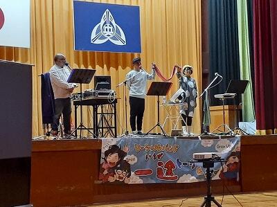 22日(水)と24日(金)に、PTA主催で三兄妹バンド一途さんによるコンサートを行いました。22日は4~6年生が、24日は1~3年生が参加しました。命の大切さ、一人一人は大切な宝物だから決していじめてはいけないこと、自分をほめ友達とほめ合うことが世界平和につながっていくことなど、歌やメッセージを通して伝えてくださいました。