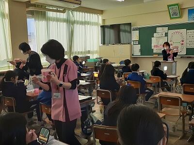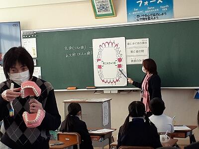 歯科衛生士の方をお招きし、4年生がキッズブラッシング教室を行いました。ちょうど永久歯に生えかわる時期、歯ブラシのチェックの仕方や永久歯の磨き方を学んだ後、丁寧に歯を磨きました。一人一人、自分の歯を大切にしようとする意識が芽生えたようです。