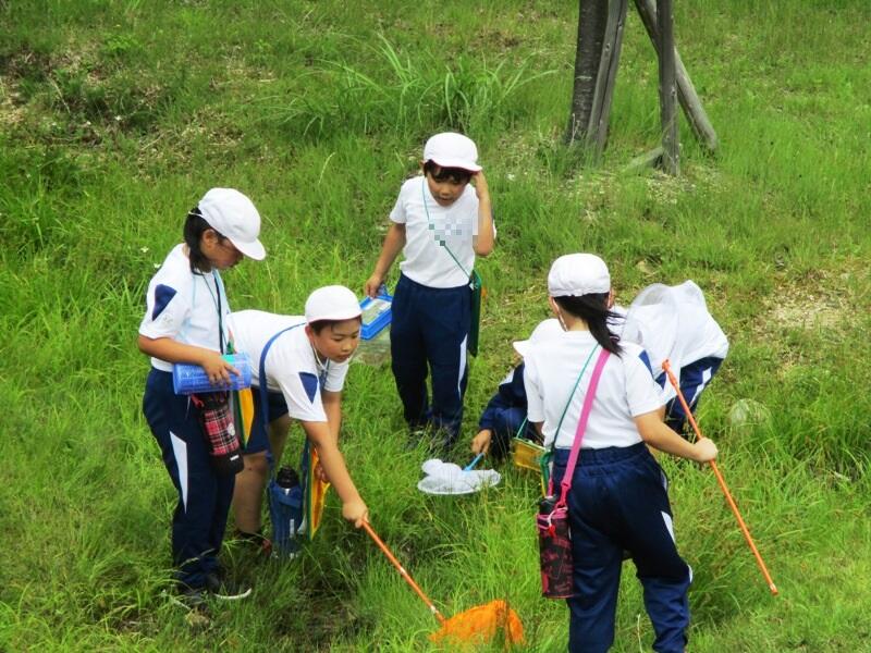 夢中の3年生。大きなヤゴやカエルも見つけました。