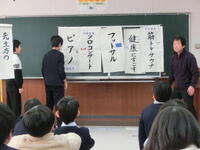 元気な声で今年最後の校歌を歌った後、校長先生からは、新年の干支「馬」にちなんで、新年の目標についてのお話がありました。その後の生徒指導の先生からのお話では、先生方の冬休みの目標クイズがありました。先生方のいろんな2週間の過ごし方を楽しく知ることができました。